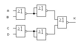 Több logikai változó NEM-VAGY kapcsolatát - több két-bemenetű kapuból - az ábra szerinti kapcsolásban lehet megvalósítani.