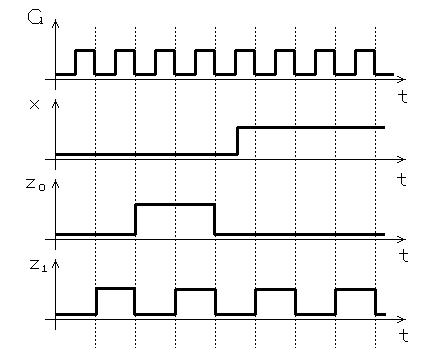 kimeneti kombinációsorozatot, míg az X1-nél (x=1) pedig a Z0-Z1-Z0-Z1 sorozatot kell előállítanunk.